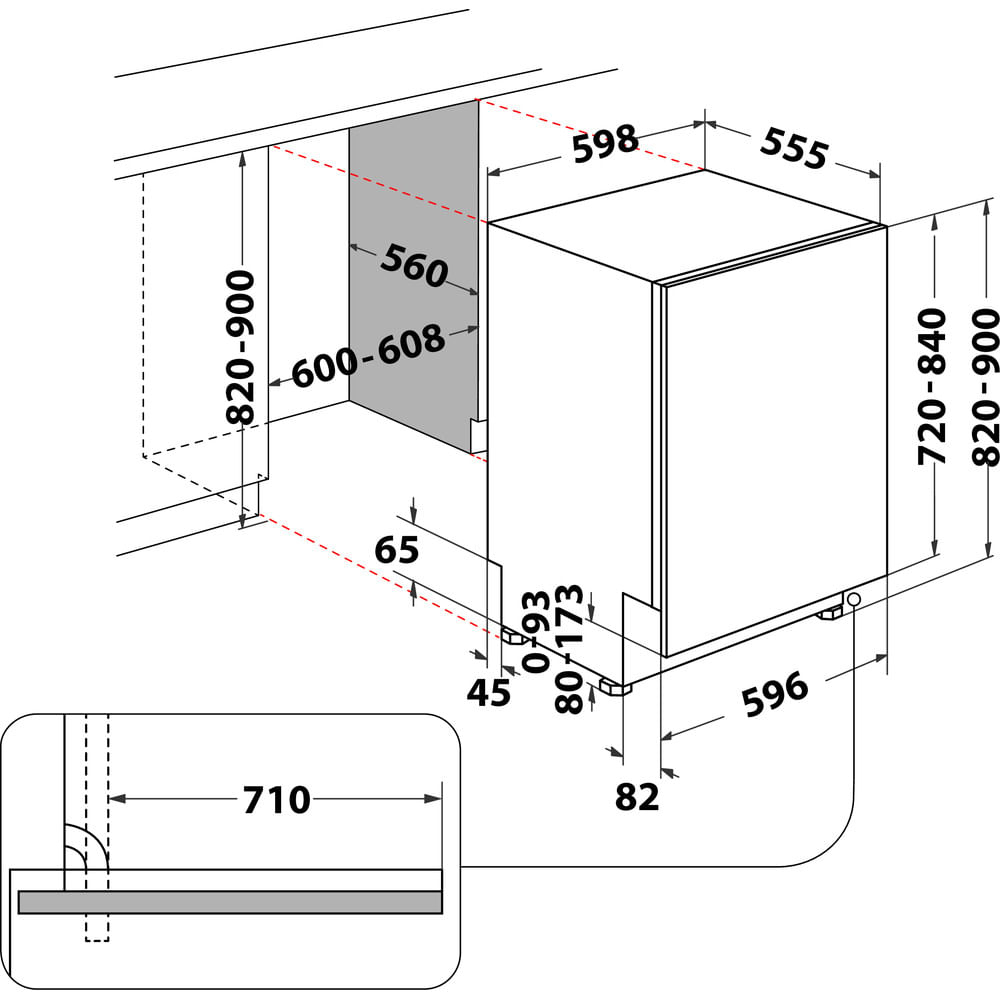 Whirlpool MaxiSpace W8I HT58 TS. Apparaatplaatsing: Volledig ingebouwd, Productafmeting: Volledige grootte (60 cm), Kleur bedieningspaneel: Zwart. Aantal couverts: 14 couverts, Geluidsemissieklasse: A, Geluidsniveau: 38 dB. Energie-efficiëntieklasse: B, Waterconsumptie per cyclus: 9,5 l, Energieverbruik per 100 cycli: 64 kWu. Breedte: 598 mm, Diepte: 555 mm, Hoogte: 820 mm. Gewicht verpakking: 37,5 kg