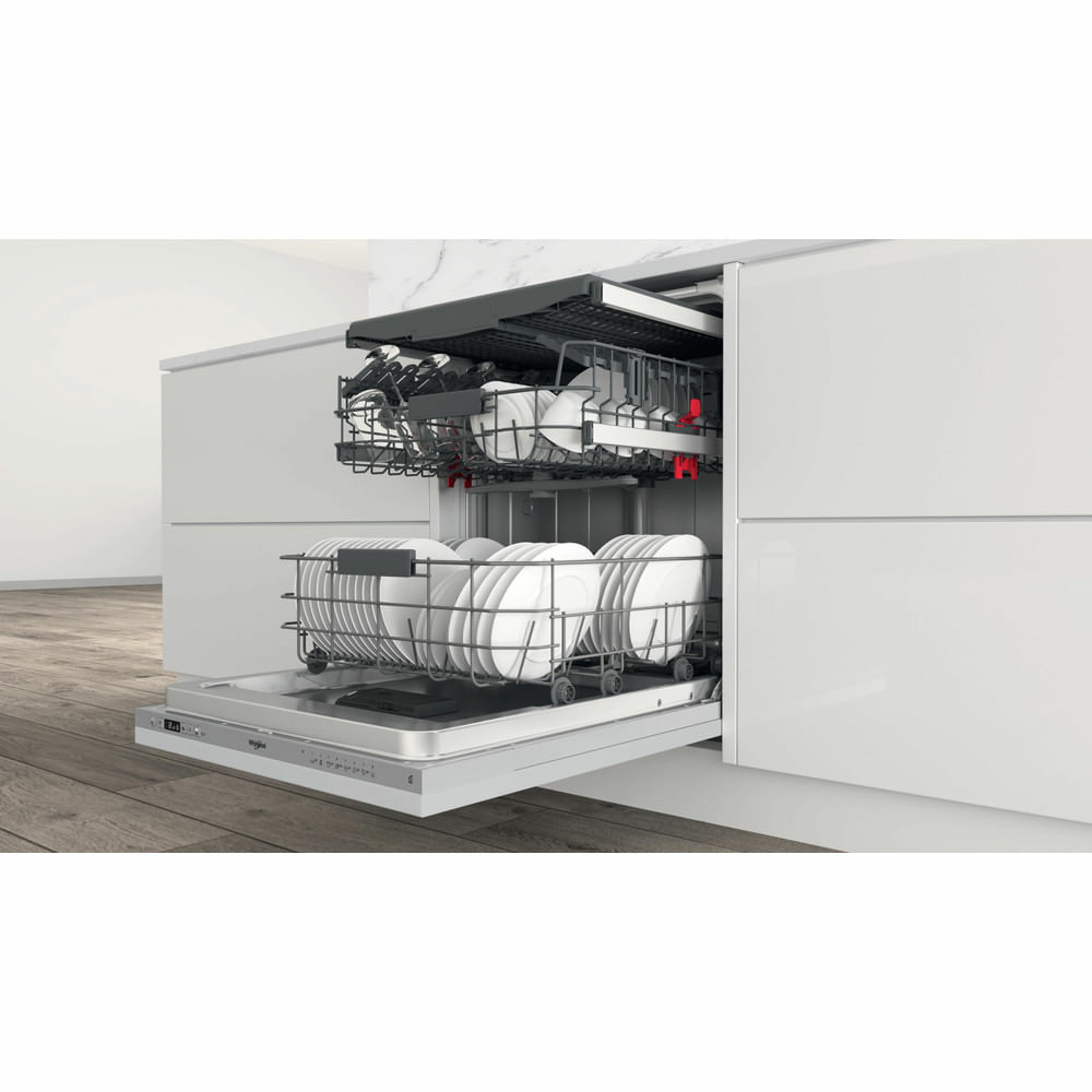 Whirlpool WIC 3C26 F. Apparaatplaatsing: Semi-ingebouwd, Productafmeting: Volledige grootte (60 cm), Kleur bedieningspaneel: Zilver. Aantal couverts: 14 couverts, Geluidsemissieklasse: C, Geluidsniveau: 46 dB. Voetenverstelling: 8 cm. Energie-efficiëntieklasse: E, Waterconsumptie per cyclus: 9,5 l, Energieverbruik per 100 cycli: 95 kWu. Breedte: 598 mm, Diepte: 555 mm, Hoogte: 900 mm